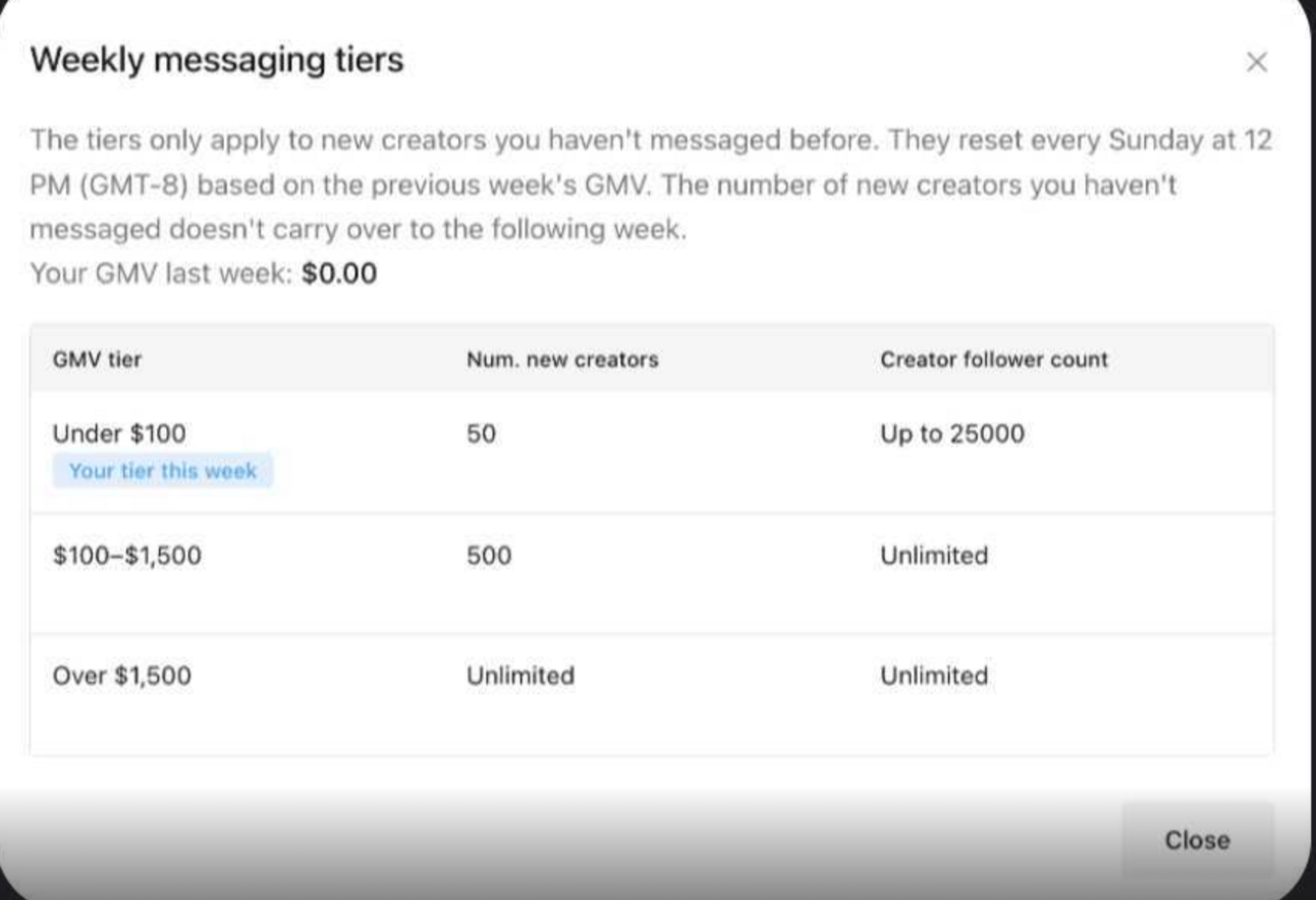 On top of the above… so much has changed. In fact - yesterday TikTok just introduced this messaging limit for low GMV brands! (don’t worry there is a solve!